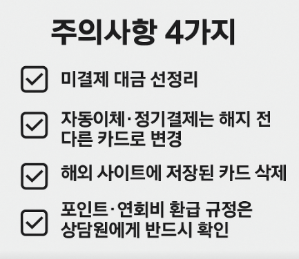 - 이후 자동이체, 구독 서비스 등록 정보를 새 카드로 교체해야 함