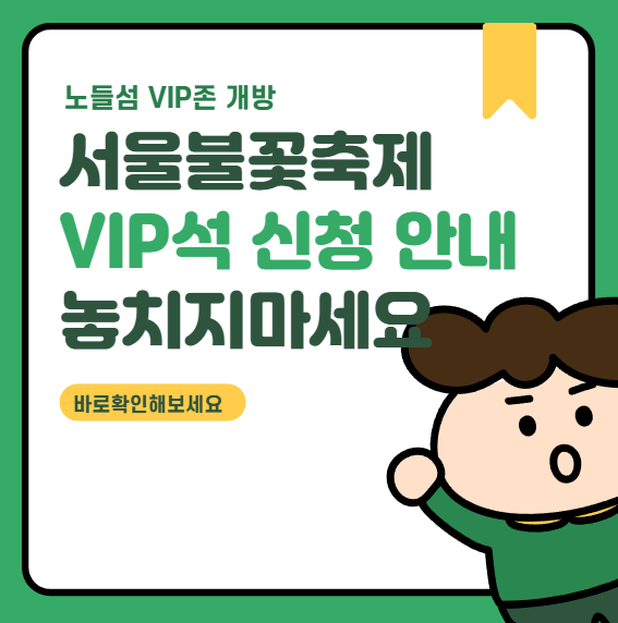“노들섬 VIP존 예약 바로가기” 버튼을 통해 빠르게 신청하고, 가족과 함께 올가을 가장 아름다운 추억을 만들어 보시길 바랍니다.
