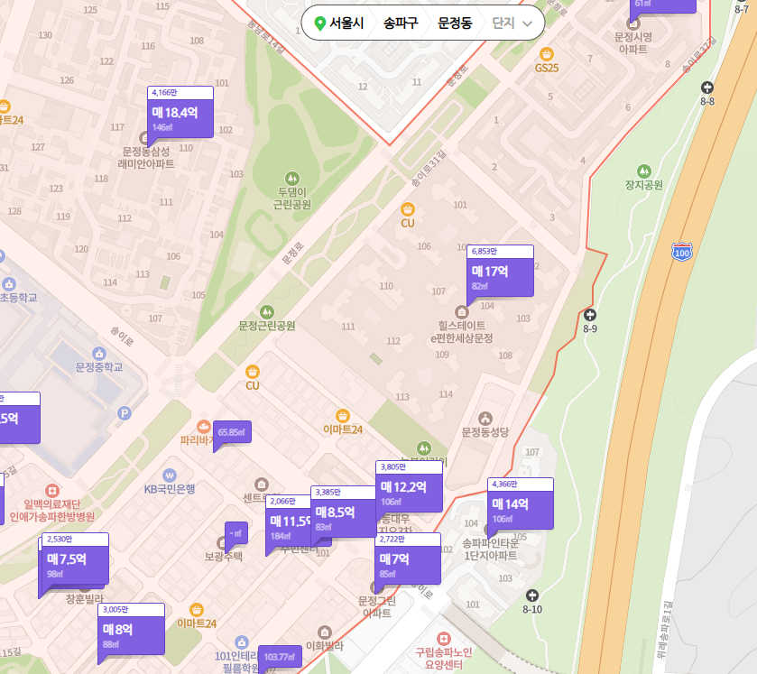 - 8호선 문정역 도보권