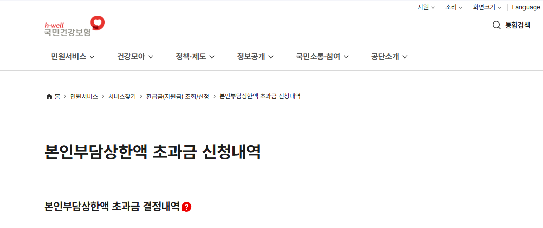 | 기준 | 연간 본인부담금 > 소득분위별 상한액 초과 |
