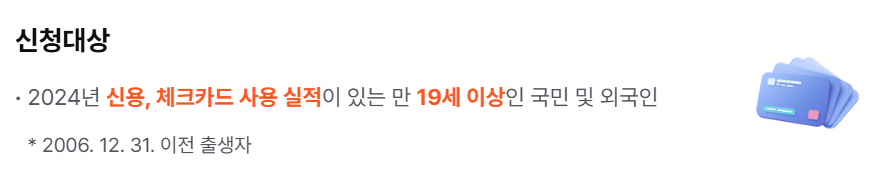 - 단, 2024년에 신용카드나 체크카드 사용 이력이 있어야 함