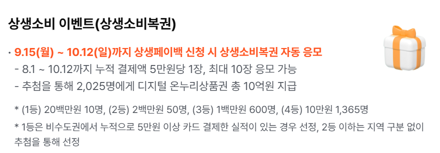 - 참여 조건: 상생페이백 신청 시 자동 응모