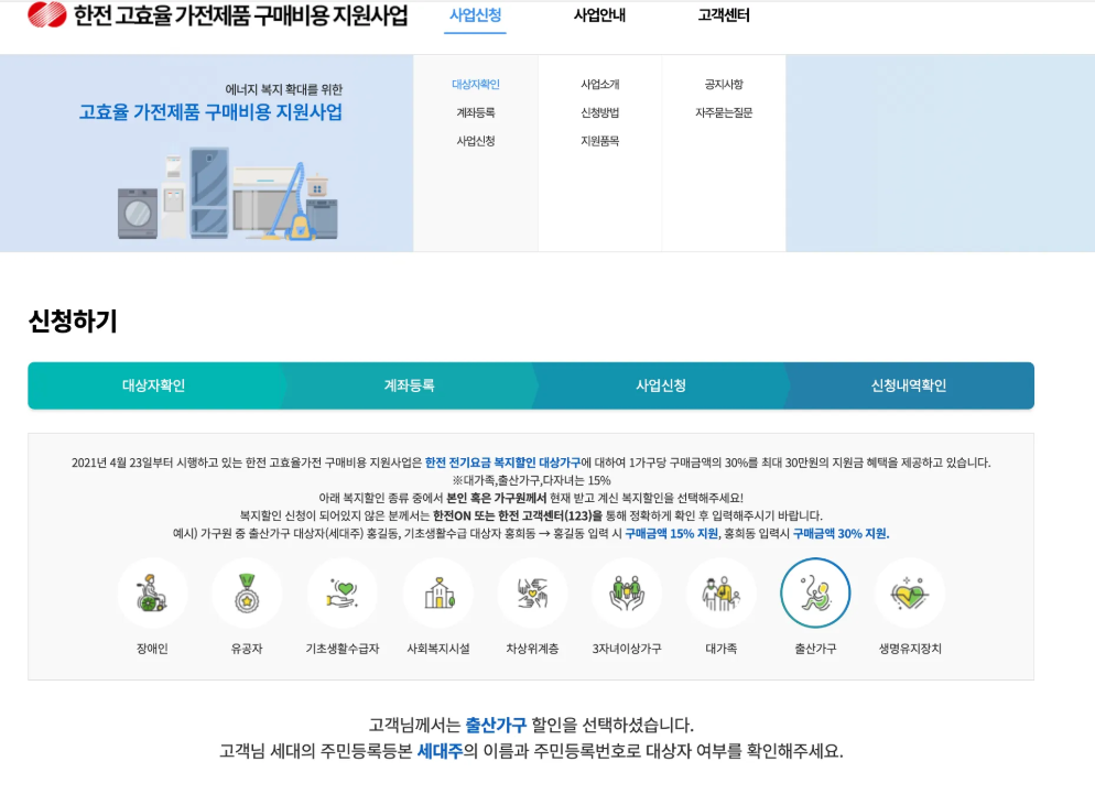 🔹 한전 고효율 가전제품 지원사업 공식 홈페이지에서 온라인 신청