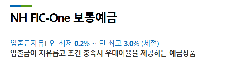NH저축은행 파킹통장 ‘NH FIC-One’ 최대 연 3.0% 가이드